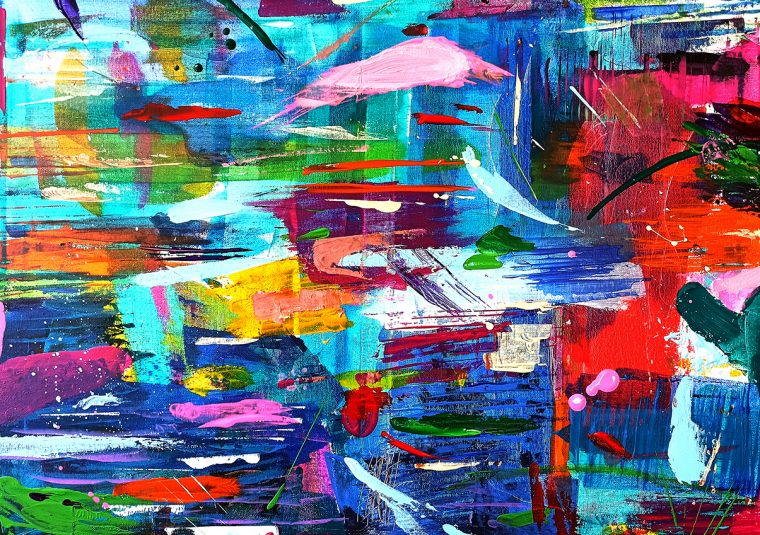 Impressionen Offenes Atelier Teamevent Actionpainting, Ausschnitt Offenes Atelier Inspiration aus der Natur. Werk einer Teilnehmerin. Experimenteller Malkurs. Collage und Acrylmalerei. Experimentelles Malen, 2- tägiger Malkurs. Collagetechnik. Experimenteller Malkurs. Bilder eines Schnupperkurses. Mischtechnik mit Pastell Ölkreide, Tusche und Acrylfarbe. Malkurs Luxus. Acrylmalerei mit Spachtel und Pinsel. Experimenteller Malkurs.